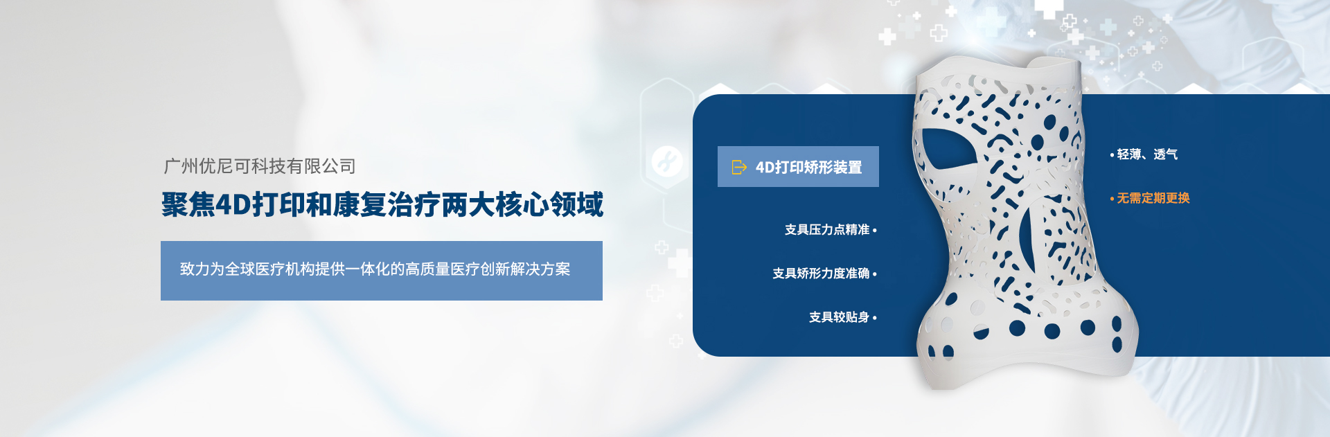 集前端扫描,假体设计和4D打印于一体,设计并开发了一系列智能矫形装置;